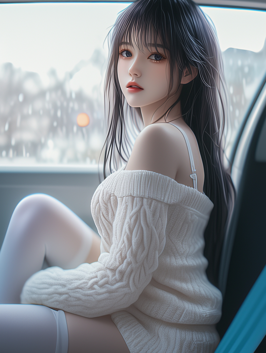 她那清澈湿润的双瞳中映出了城市霓虹灯的光辉,稀稀落落的雨滴打在了车窗上。城市的喧嚣声,车流鸣笛声和春日落雨声交织在一起,形成了一曲忧伤的交响乐。