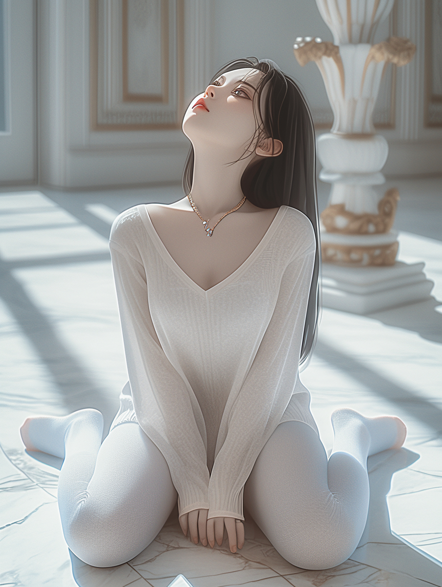 我视线从她身上缓缓扫过:少女的脸蛋是那么圣洁,锁骨的弧线温柔流畅,敞开胸怀苞乳盈盈一握,是那么的诱惑,身下的白丝遮盖不住膝盖和脚踝处肌肤的粉嫩,又是那么清纯。